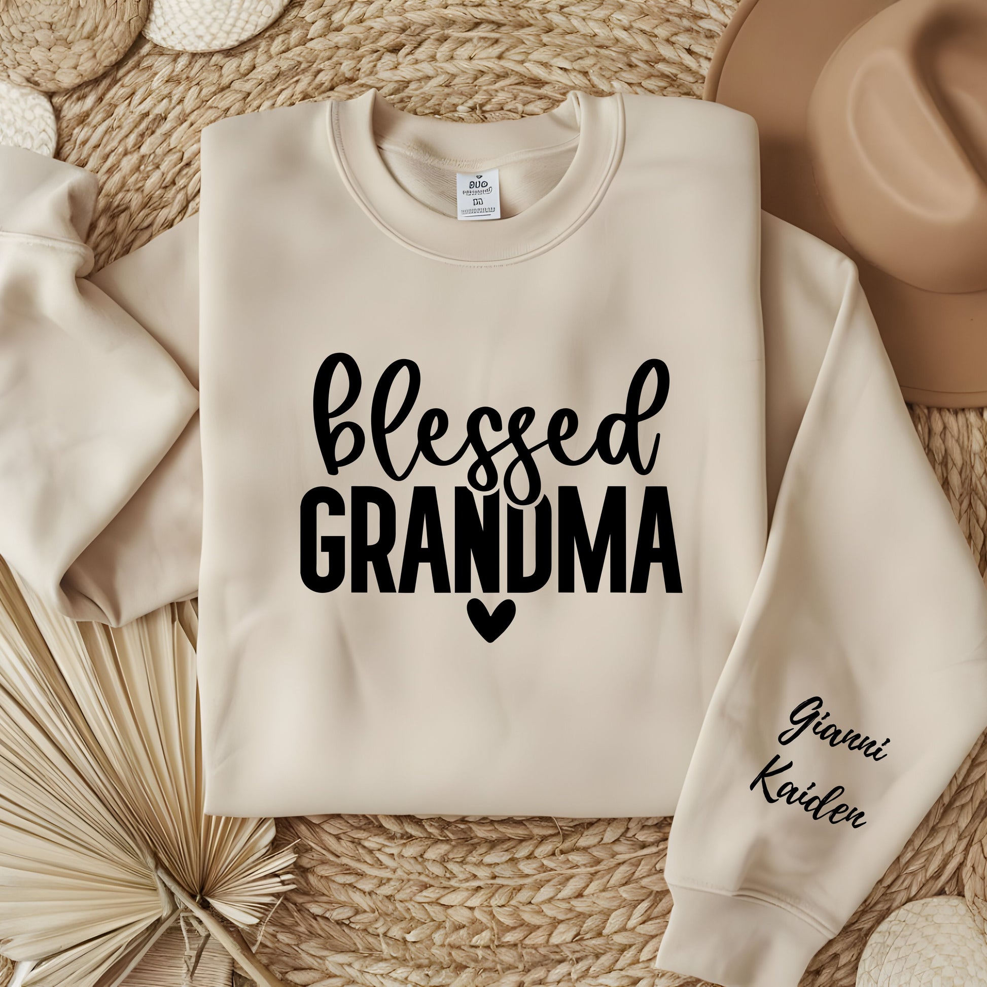 This premium cotton sweatshirt offers a relaxed fit perfect for the proud grandmother. The "Blessed Grandma" design can be personalized with your children's and grandchildren's names, creating a meaningful keepsake. Crafted for comfort and durability, this sweatshirt makes an ideal gift for birthdays, Mother's Day, or any occasion to celebrate a special grandmother.