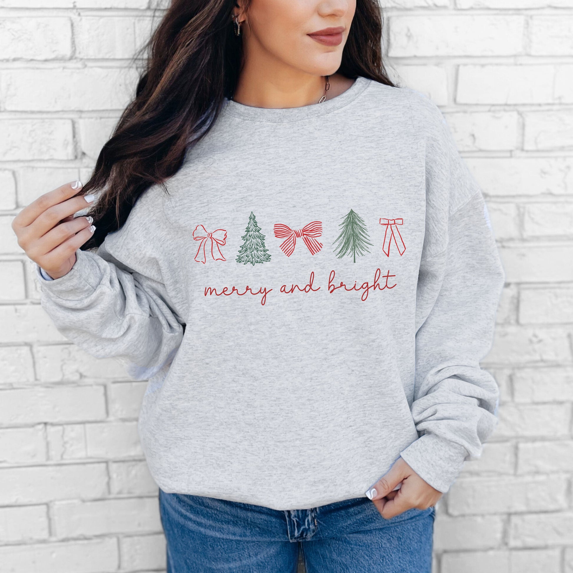 Embrace the holiday spirit with this cotton sweatshirt featuring a cheerful "Merry & Bright" design. Crafted from soft, breathable cotton, the relaxed fit provides comfortable everyday wear perfect for festive gatherings or cozy nights in. The vibrant Christmas-inspired graphic captures the warmth and joy of the season, making it an ideal choice for spreading holiday cheer. Whether layered under a jacket or worn solo, this versatile piece transitions seamlessly from casual outings to seasonal celebrations.